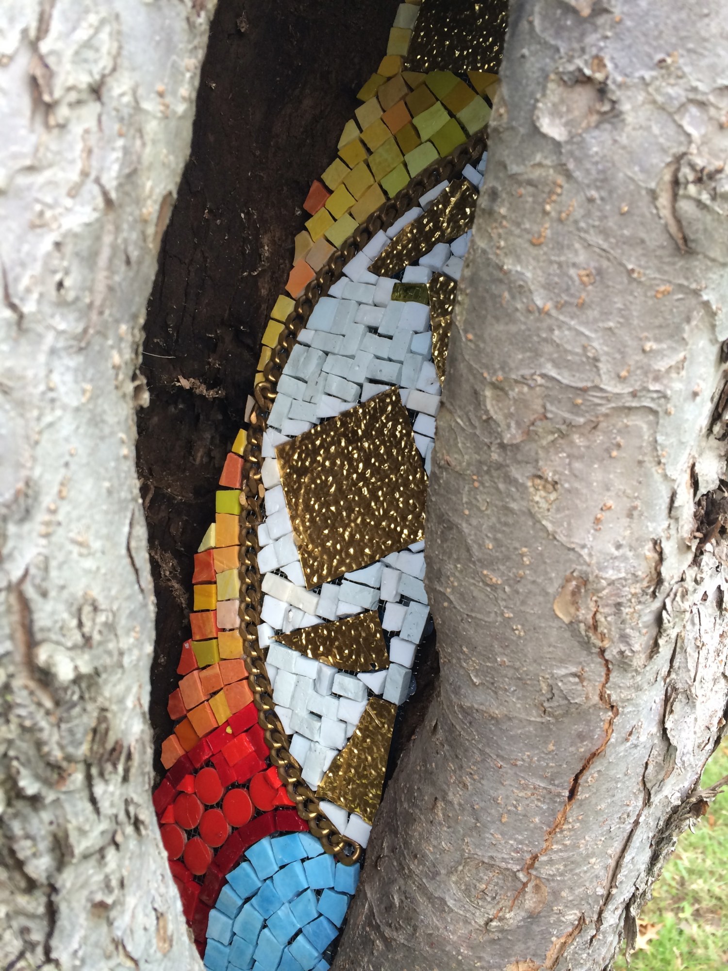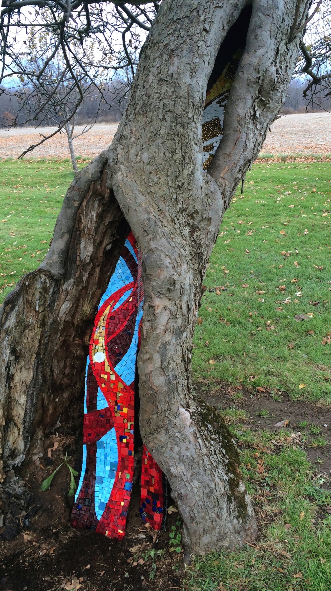 Alchemy is Celebrating the resilience of trees. It is also installed in a tree that recovered from a lightening strike, like Cross Pollination.