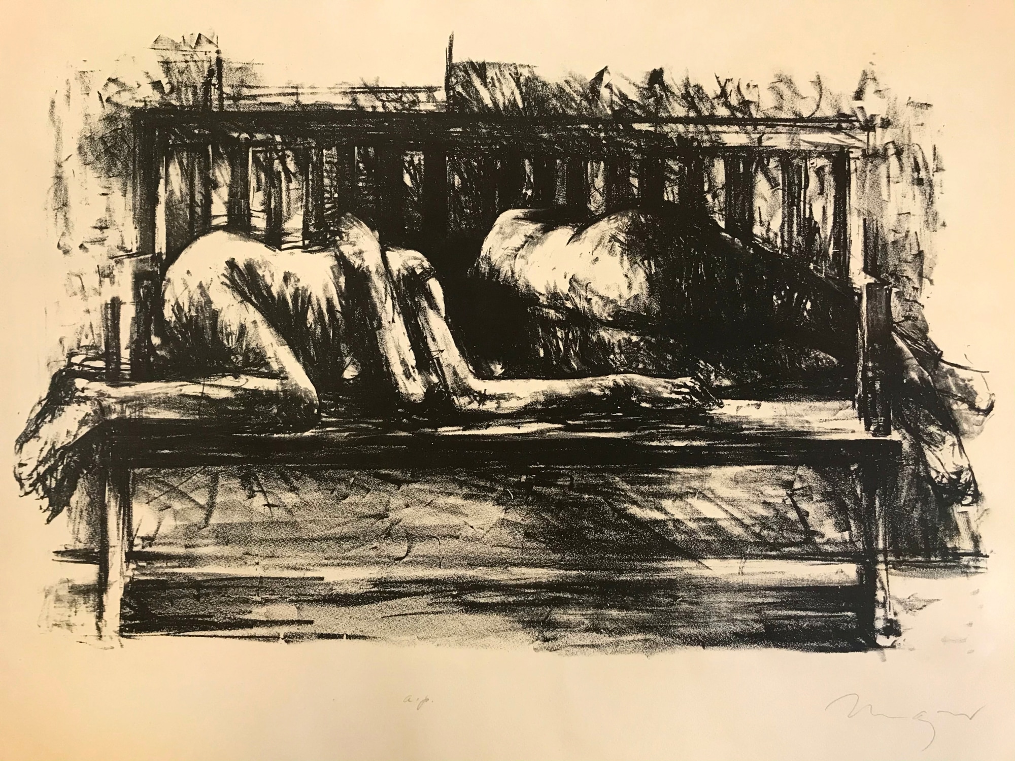 This hand pulled print is an artist proof from the portfolio of fourteen lithographs, "Images from a Locked Ward"