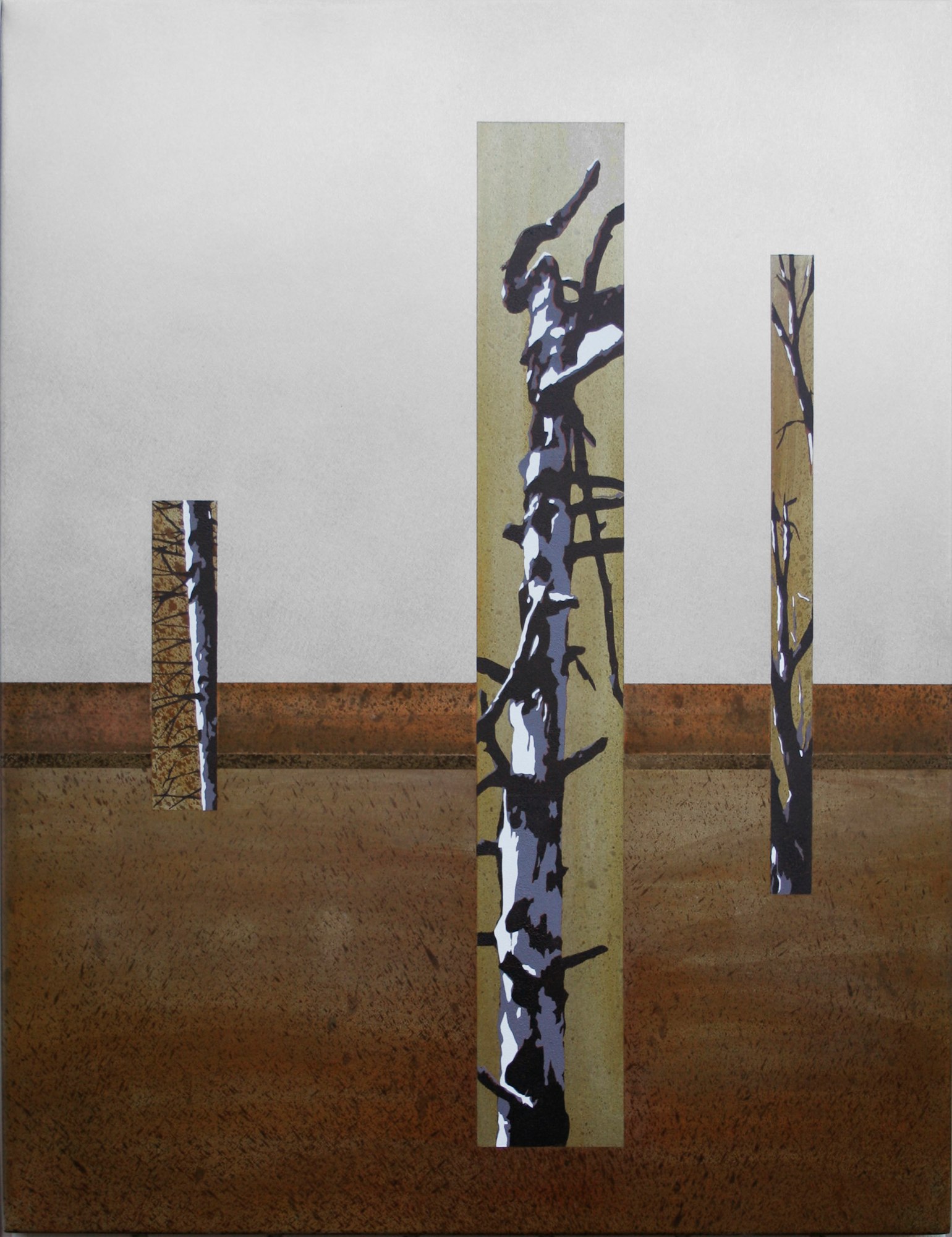 Patina painting on a steel canvas with acrylic painting.
