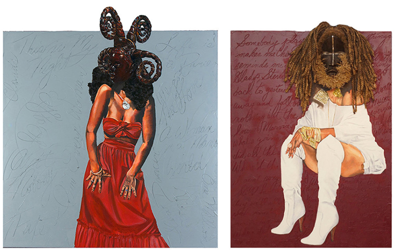 Left: Margaret Rose Vendryes, Ejaham Chaka - Chaka Khan, 36 x 36 inches. Right: Margaret Rose Vendryes, Dan Leela - Leela James, 40 x 30 inches.