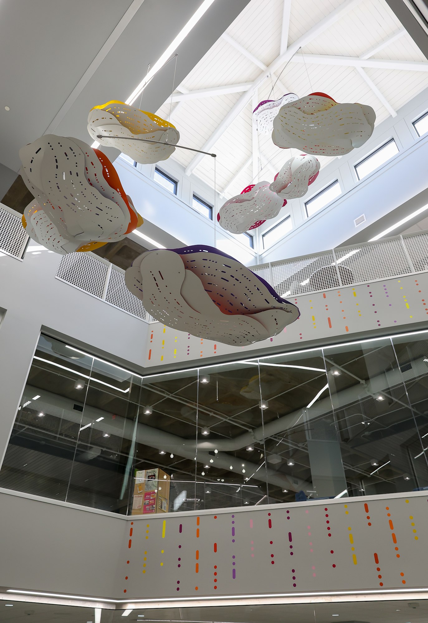 - Twenty-nine clouds suspended in 9 mobile structures, clouds range from 2’9” to 6’0” in length