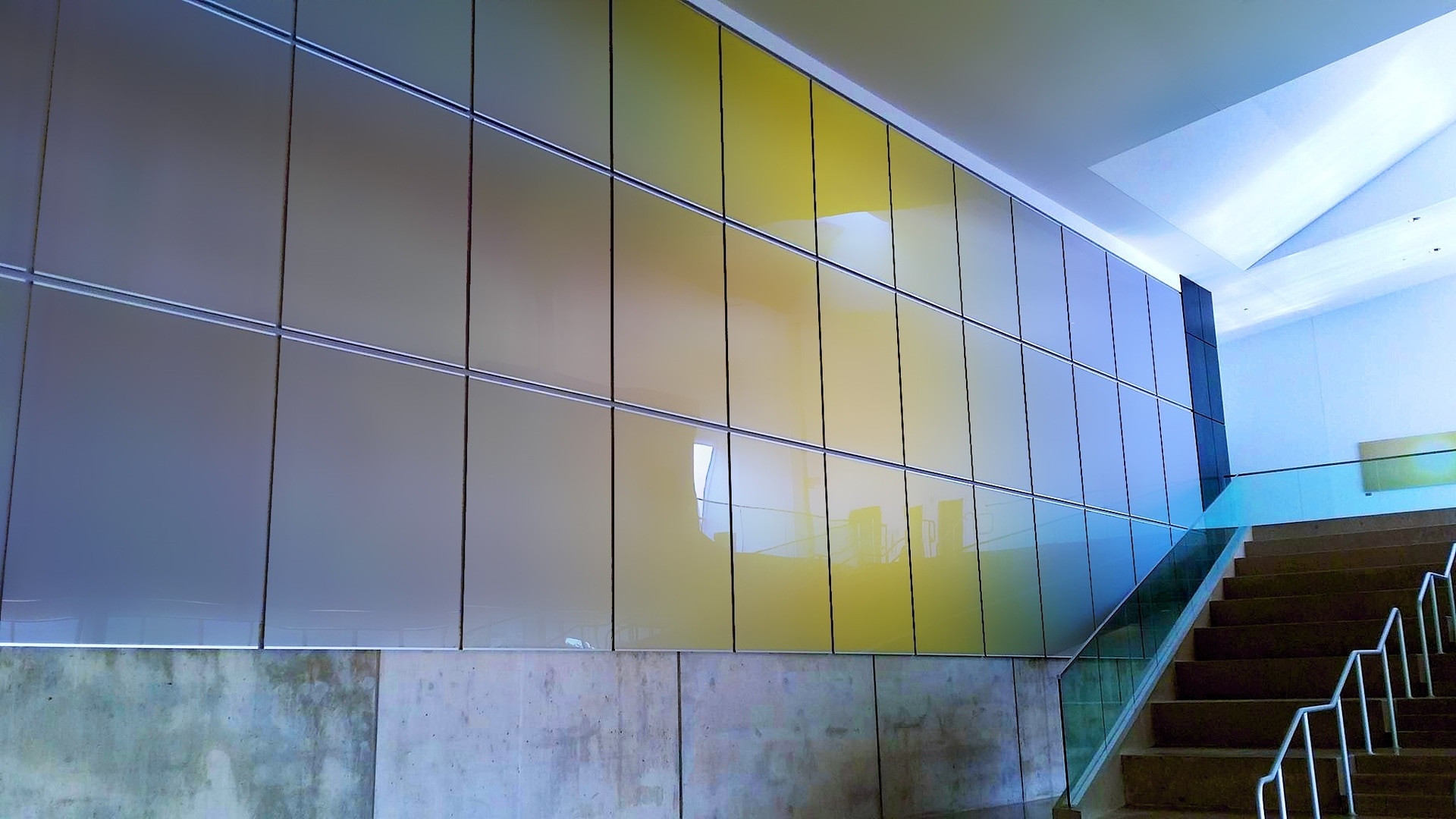 ''Eternal'' is a full wall mural consisting of 45 panels of photographic Archival C-Prints face mounted to 3/16th inch UV Gallery Plexiglass, back and front. The artwork covers the whole lobby wall length of 90 ft, with a 1/2 inch margin on the left and right side. Each panel is 71 1/2 x 96 inches in dimension and is projecting two inches from the wall. ''Eternal'' reflects the artist's interests in light and color studies and the idea of expansive light and the notion of color/colorspectrums.