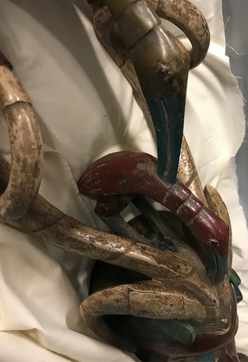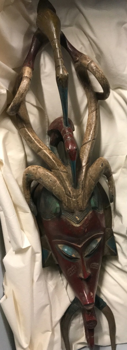 Zàùlì masquerades are common at funerals. The best-known form of the Zàùlì mask is Flali, ‘village woman’, a woman’s face ornamented with a bird representing a beloved woman who has died too young, and whose inconsolable widowed husband wants to see her reproduced in image and dance. Flali used to be danced by women in certain villages but is now danced by men. (PS)