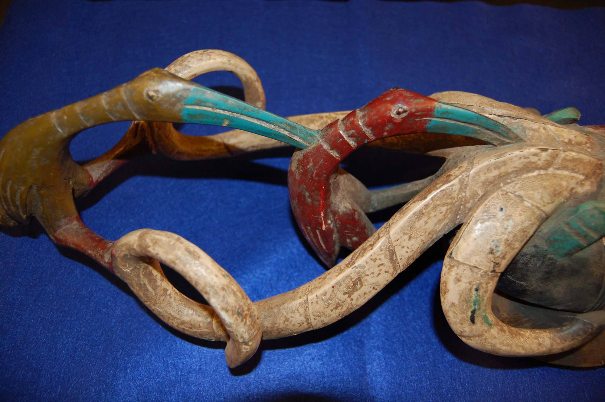 The Guro (or Gouro) are a southern Mande-language group in the central part of Côte d’Ivoire. They are known for their rich masquerade traditions. The Guro distinguish between “forest” or sacred masks endowed with powers, and profane “amusement” masks. Nevertheless, all Guro masks are designated by the generic term yu, power. Women are allowed to see only the amusement masks. Among the Guro amusement masks is the Zamble family, which includes the mythical antelope-leopard male Zamble, his beautiful wife Gú and Zàùlì, the wild and grotesque brother of Zamble.