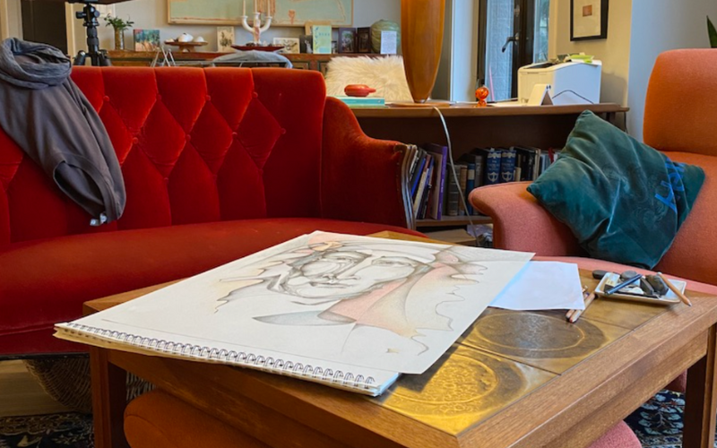 Drawing at home. Photo courtesy of Artwork Archive artist Darcy Johnson