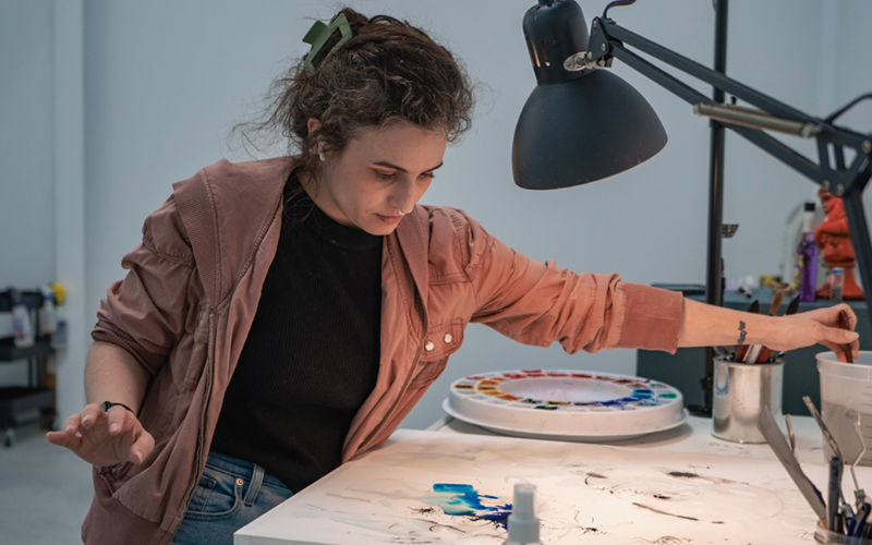 Artwork Archive artist Erika Alonso working on a new painting in her studio. © 2023 Charles Holt Photography Photographer: Charles Holt @charlesholt