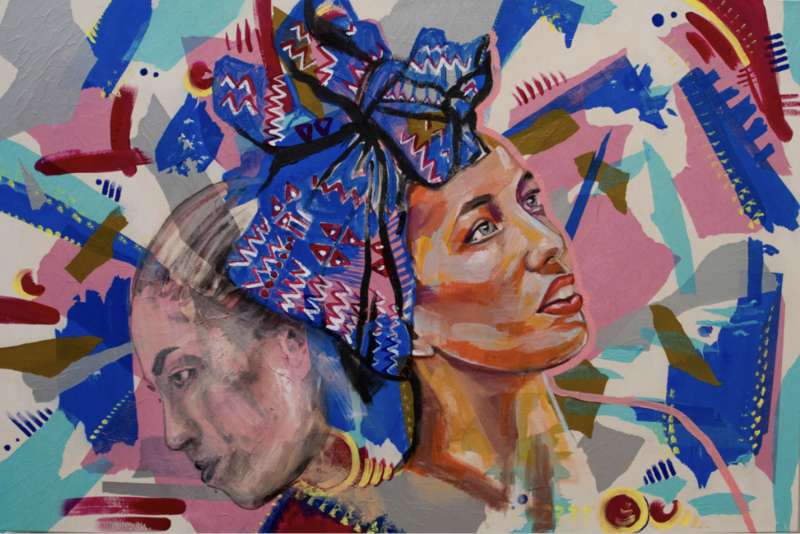 Once I have an idea in mind, I focus on my preferred medium; acrylic paint, often combined with paper and pastels. From there, my creative process continues taking shape.