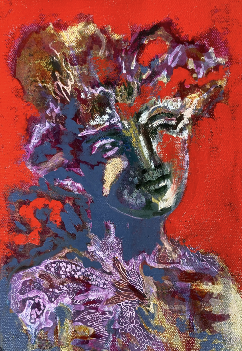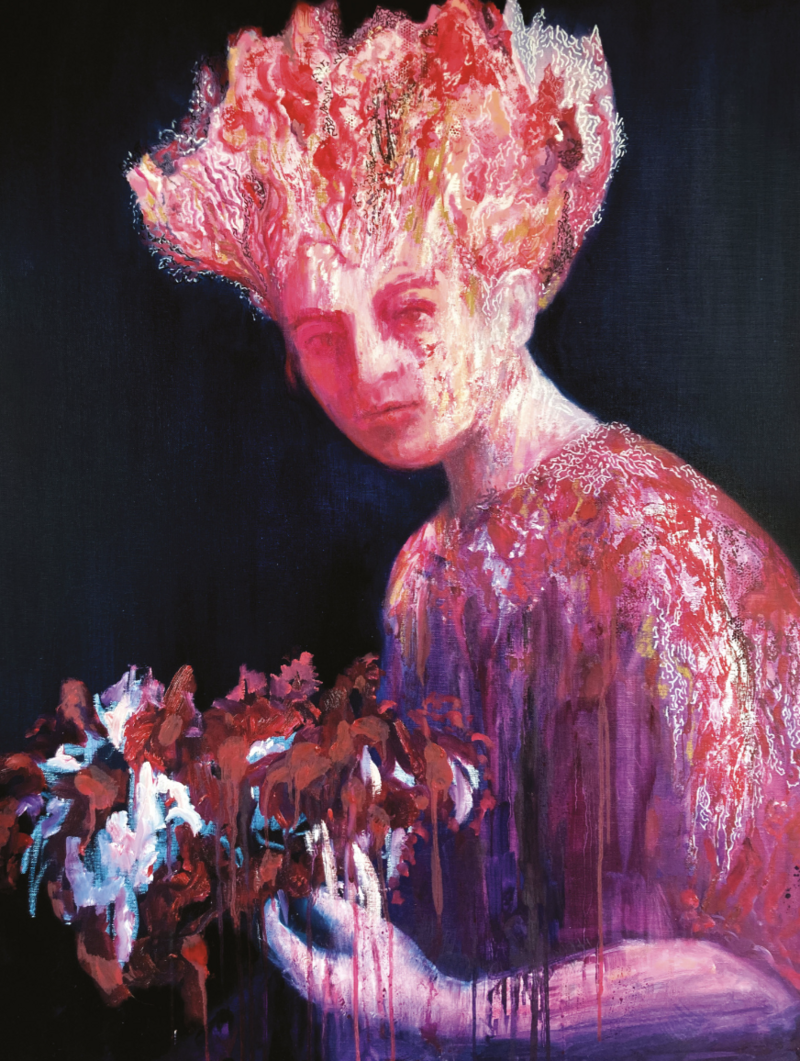Anna Radecka, La fille en magenta. The girl in magenta colour, 100 x 81 x 2cm, 2023
