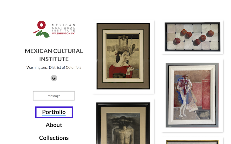 A Portfolio Page example on Artwork Archive, Image courtesy of Mexican Cultural Institute.