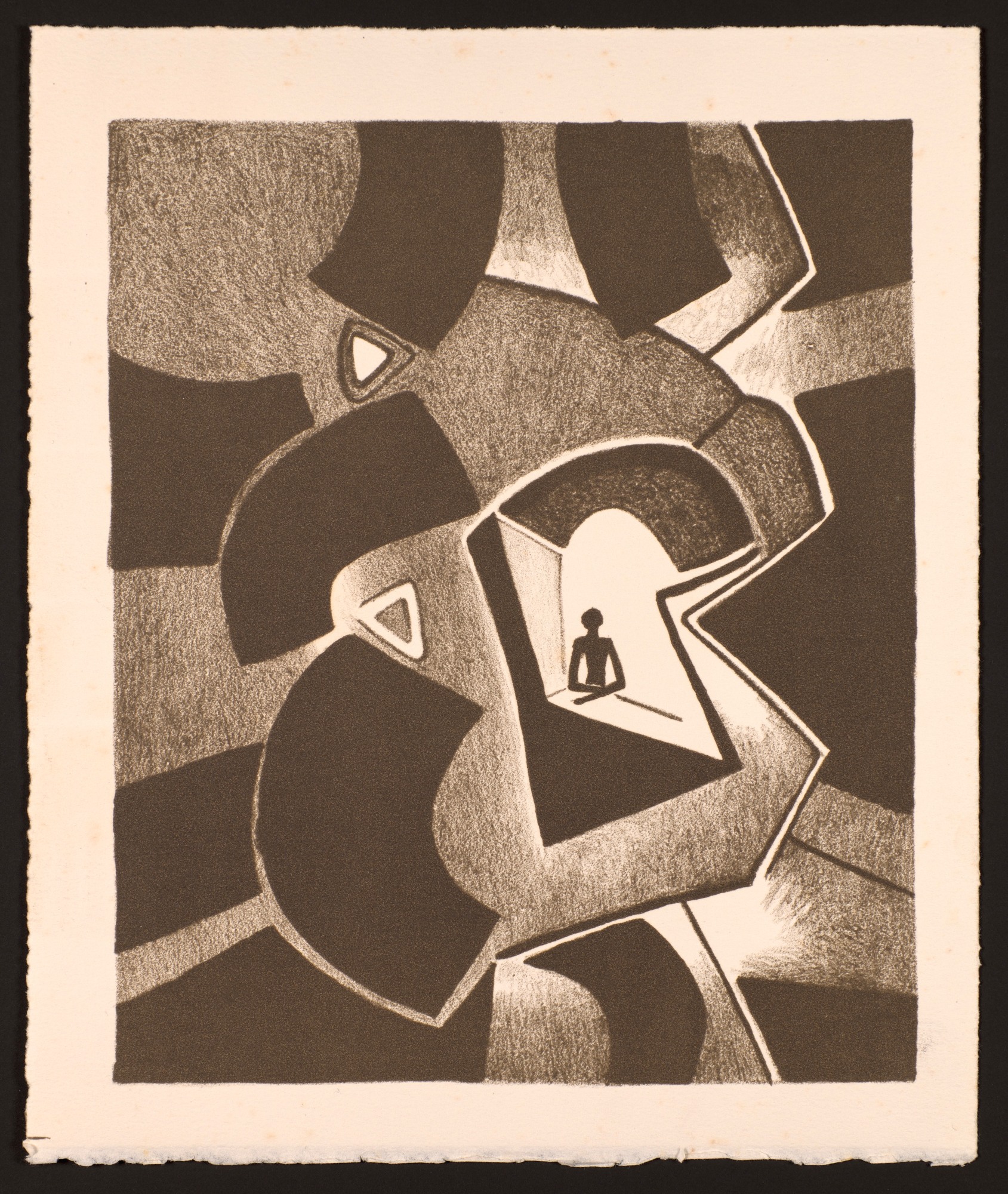 Black and white trail proof for a lithograph printed in 3 colors. Edition of 60 impressions, signed and numbered and artist proofs.