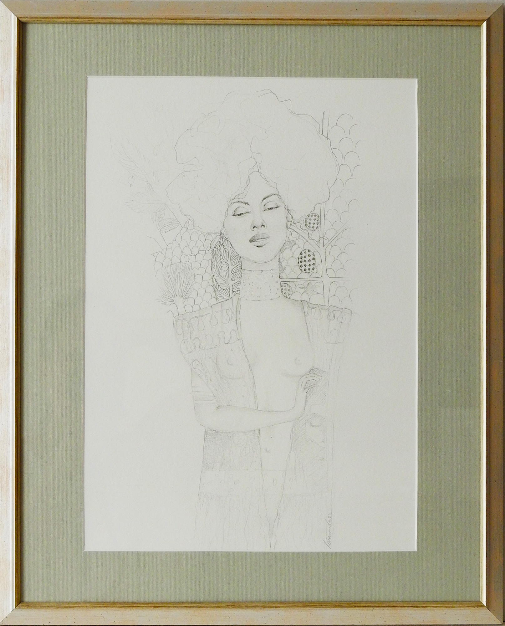This drawing explores the fine line between sensuality, power, and feminine delicacy, inspired by the rich symbolism and stylization of Art Nouveau.
