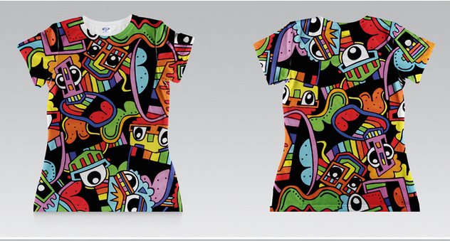 Then I either have high-res photos taken of the painting, or scan a drawing into the computer. I then manipulate the artwork in 100 different ways, and format it onto the patterns to be sent off for sublimation printing. I then order my samples, test quality, and put in an order so I can then photograph the garment on a model and start selling it!