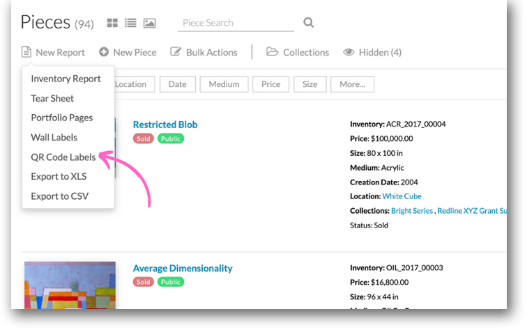 It’s easy to create QR codes in your Artwork Archive account.