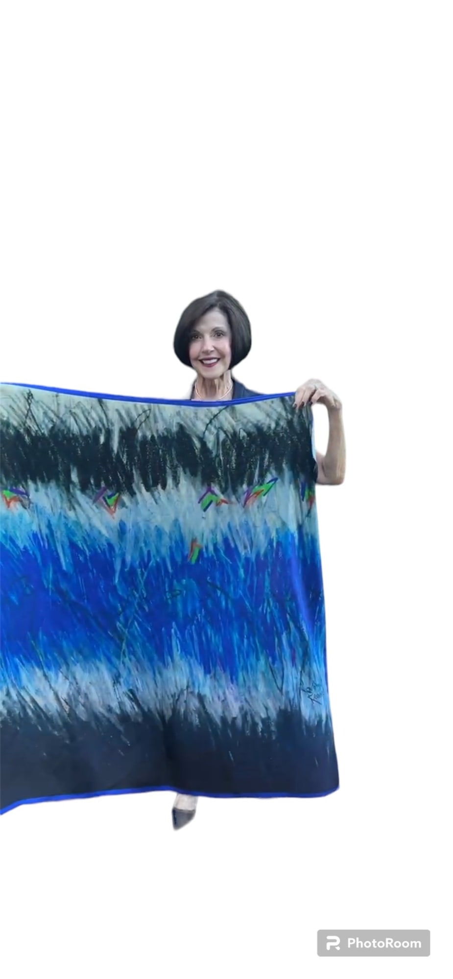 Art Inspired Scarf - Enjoy the luxury of this gorgeous 18m/m silk twill scarf. The dramatic movement and vibrant cobalt & sapphire blue colors of artist, Carolyn Kramer's chalk pastel drawings inspire this luxurious 40" x 40" scarf.