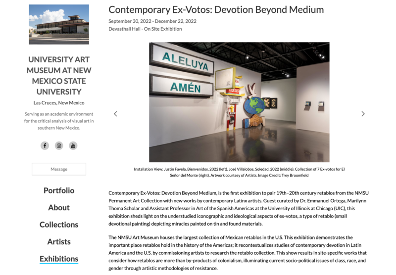Screenshot from the University Art Museum at New Mexico State University's exhibition on their Public Profile.