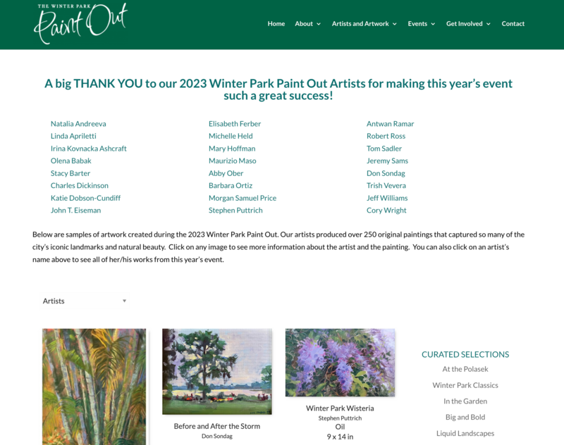 Winter Park Paint Out worked alongside the Artwork Archive team to achieve the functionality and look and feel that they needed for their art events. They embedded their annual shows, collections, and artist profiles into their website.