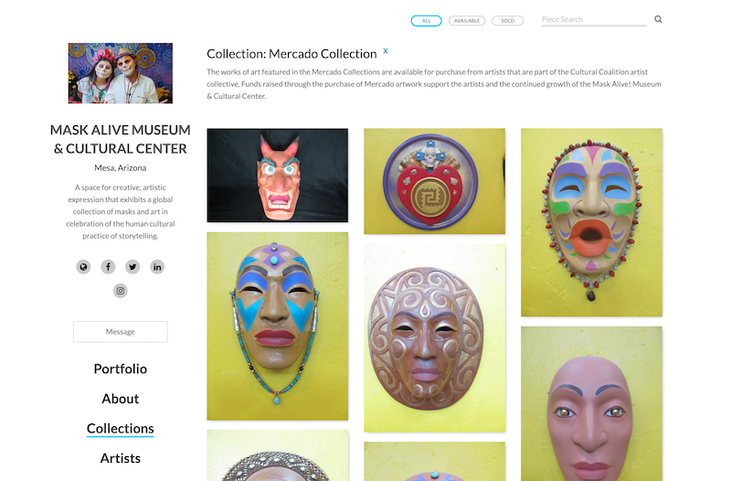 We’ve also seen institutions create specific retail Collections for reproductions and other purchases. The Mask Alive! Museum & Cultural Center created an online Mercado Collection featuring works from the Cultural Coalition artist collective. Funds raised through the purchase of Mercado artwork support the artists and the continued growth of the Mask Alive! Museum & Cultural Center.