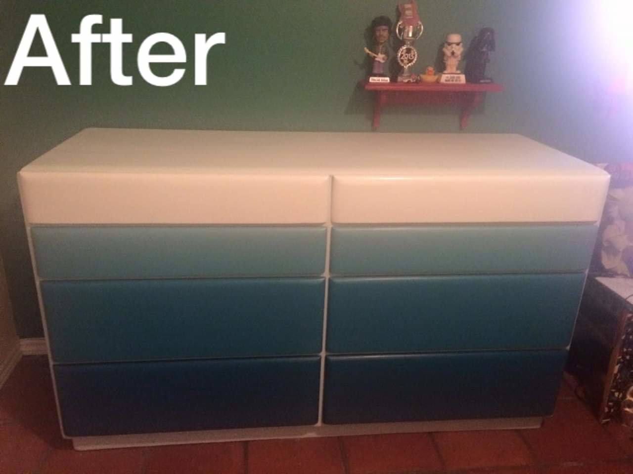 Refinished Cedar 80's Dresser. Used the 4 colors on the same paint card.