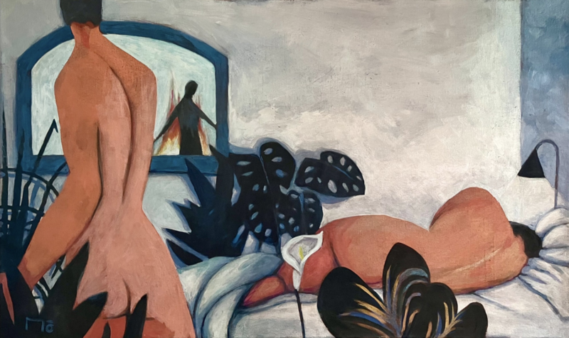 The nude is the cornerstone of her art, used “like a director uses actors” to craft atmospheres and tell open-ended stories. Her paintings often surprise viewers, especially those featuring naked men, a subject rarely explored by women in art history. As MŌ explains, “Artists have always been fascinated by the human body, but male painters have long painted women without the reverse being true.”