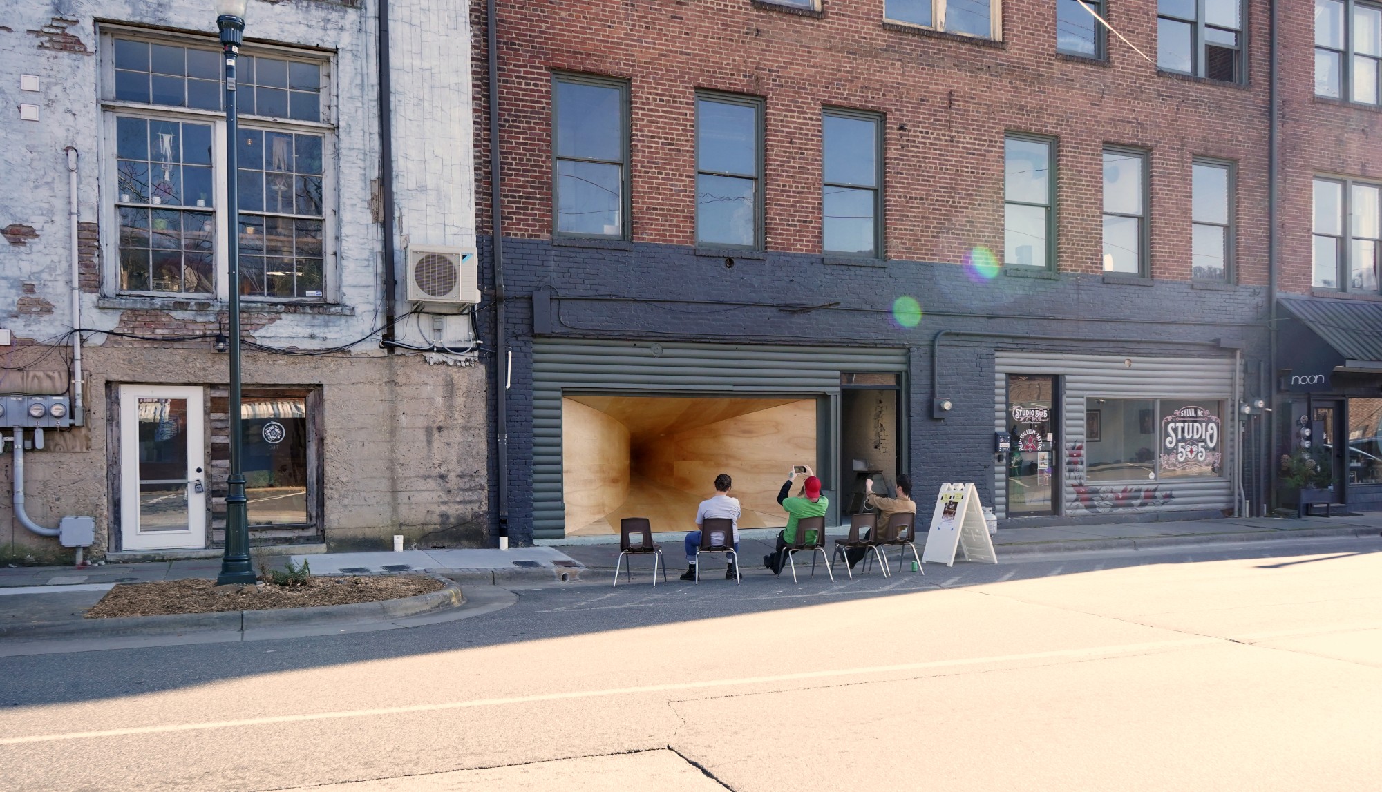 What if whispers could become architecture? This project transforms a former hotel garage into a bodily orifice for communing with the street. Bent plywood created acoustic amplification of a single mother singing Happy Birthday to her daughter, a jawharp solo, spoken poetry, violin practice, and bootleg records found within the hotel walls. Both scheduled performances and playful experiments with passers-by were facilitated during the month-long installation.