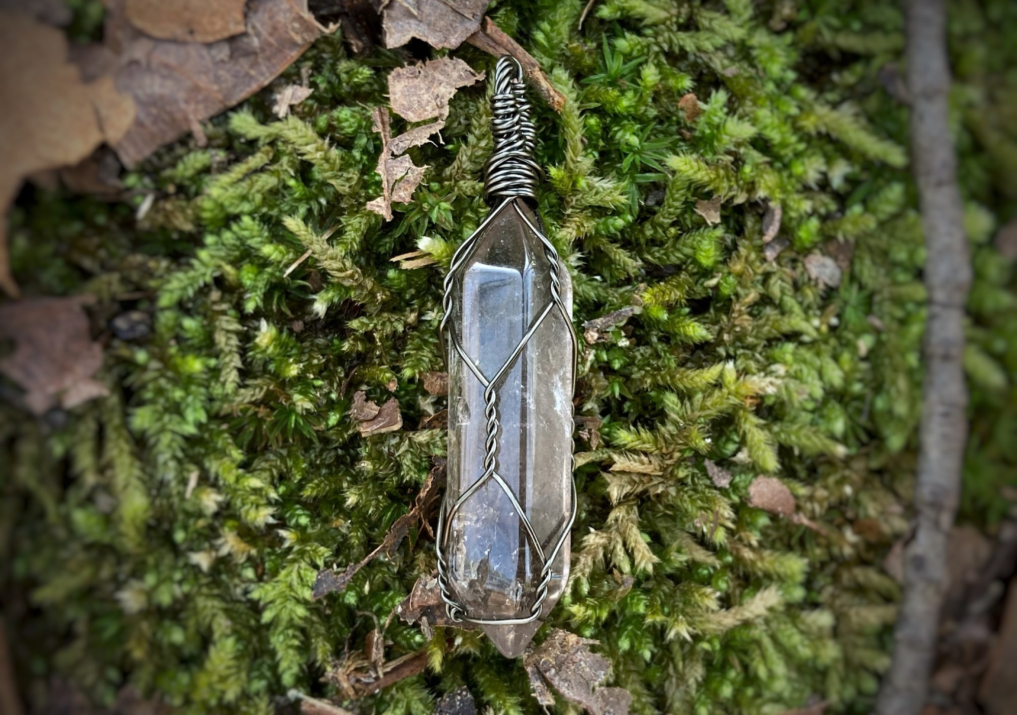 Double Terminated Quartz Point wrapped in Silver-Plated Enameled Copper Wire