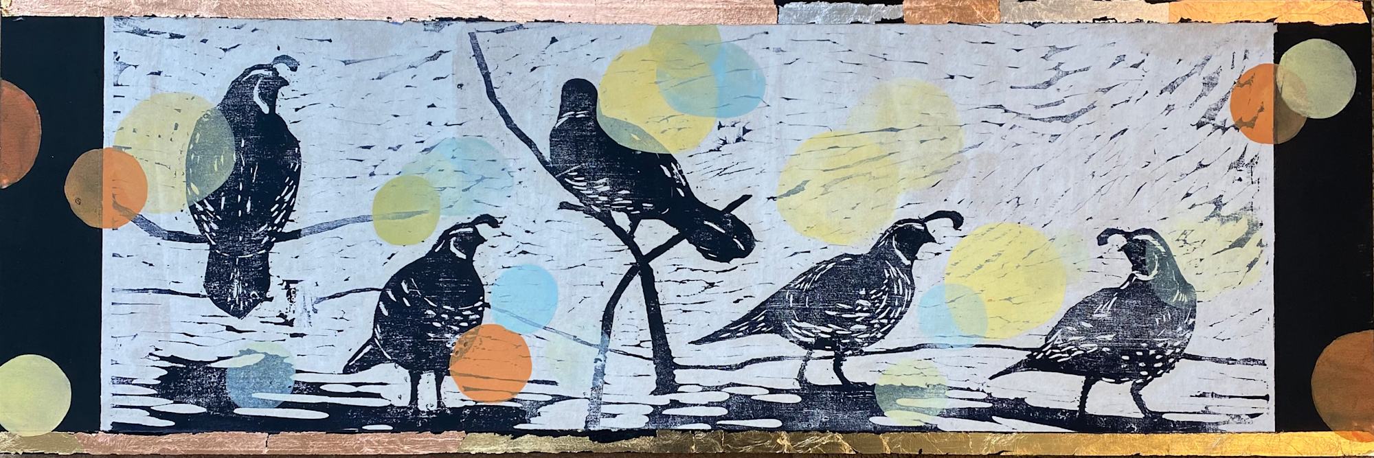 Mixed Media; gold leaf, woodblock print