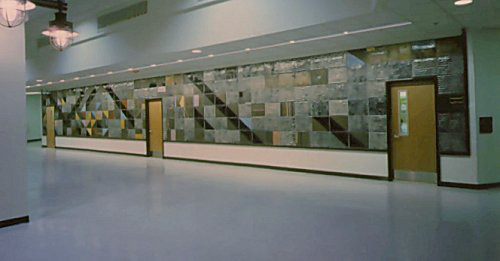 Clay tile wall has a definite system of visual order and disorder. At a distance the wall reads with a strong sense of order. This same visual order changes to disorder when the wall is viewed closely and the view is obstructed.