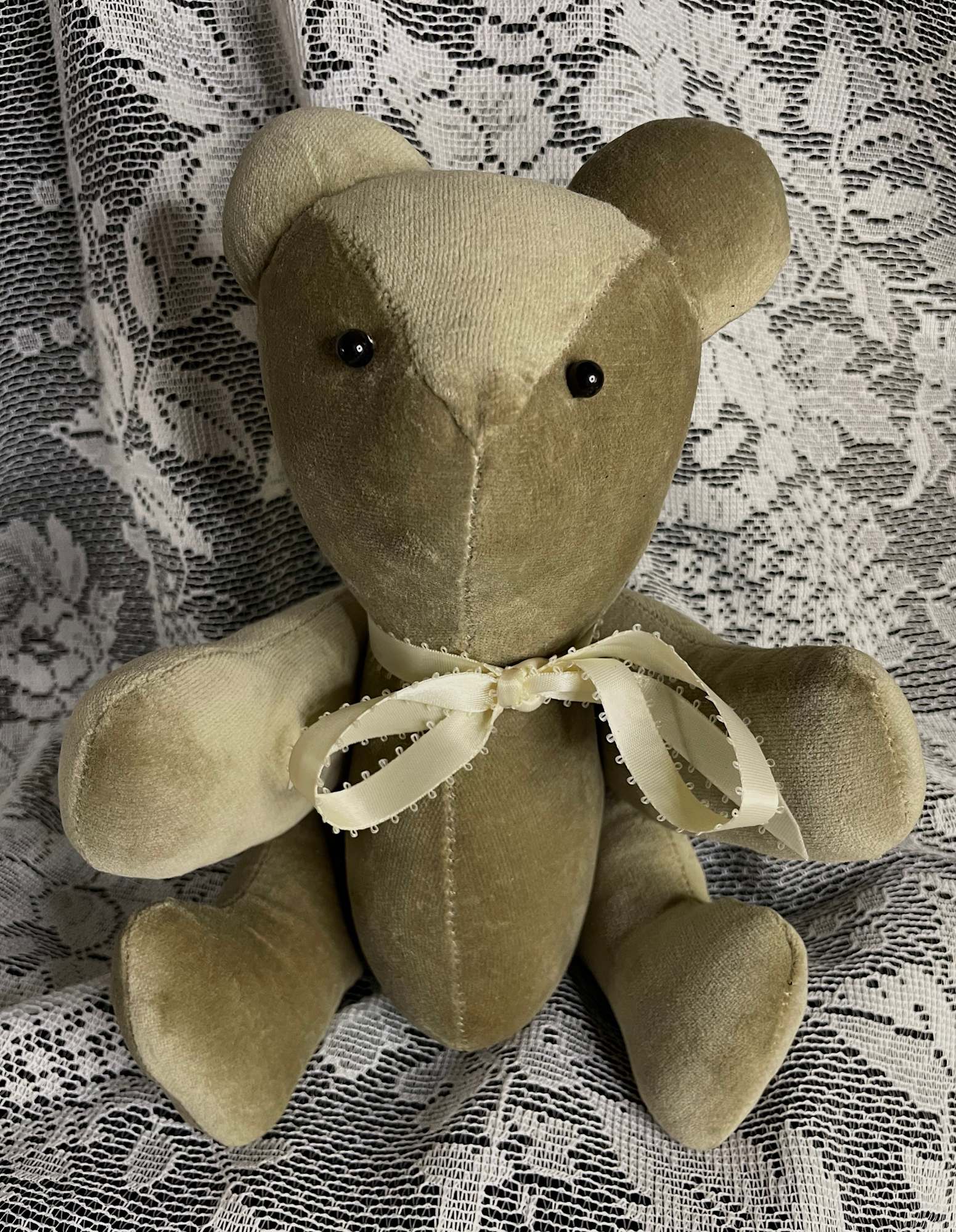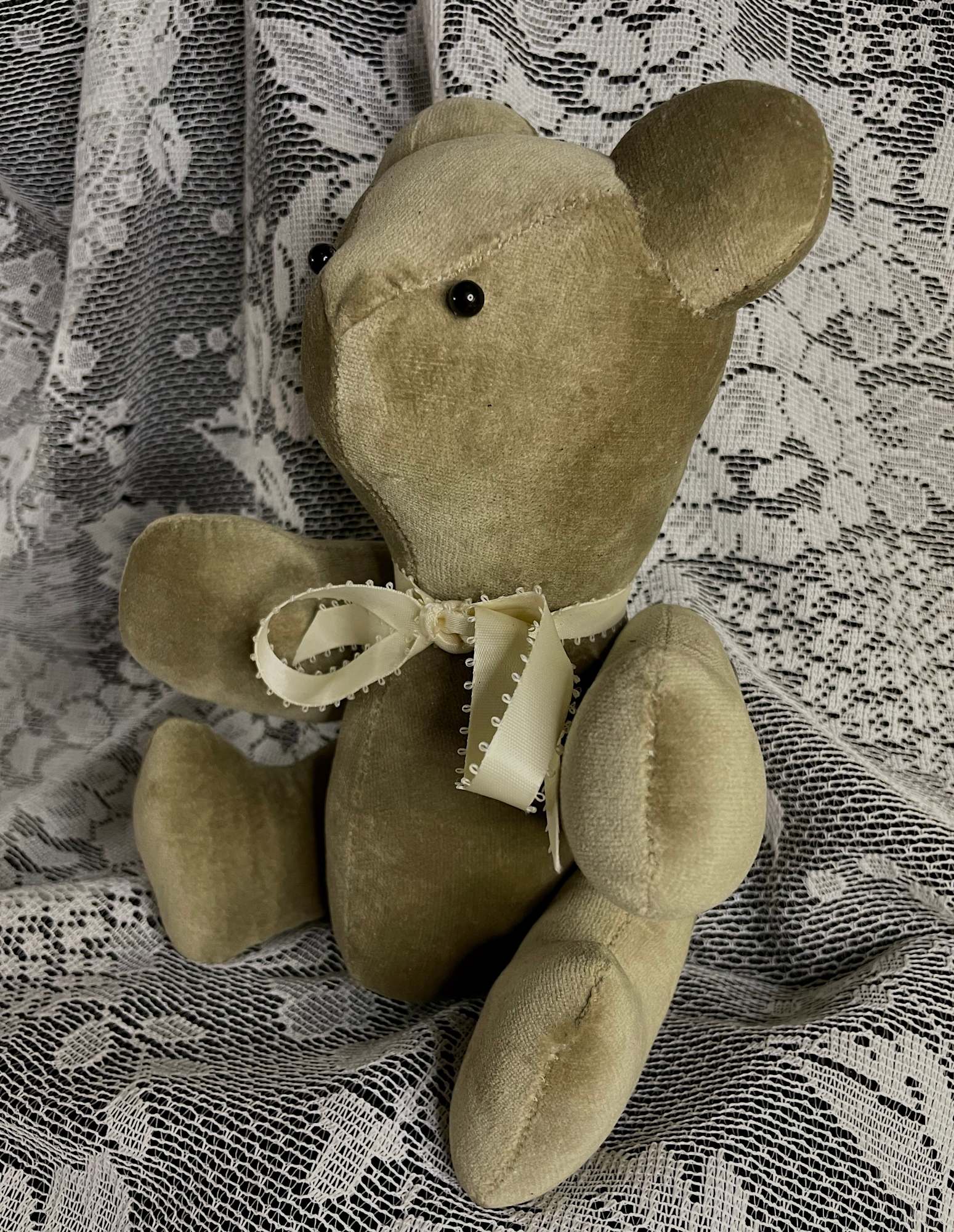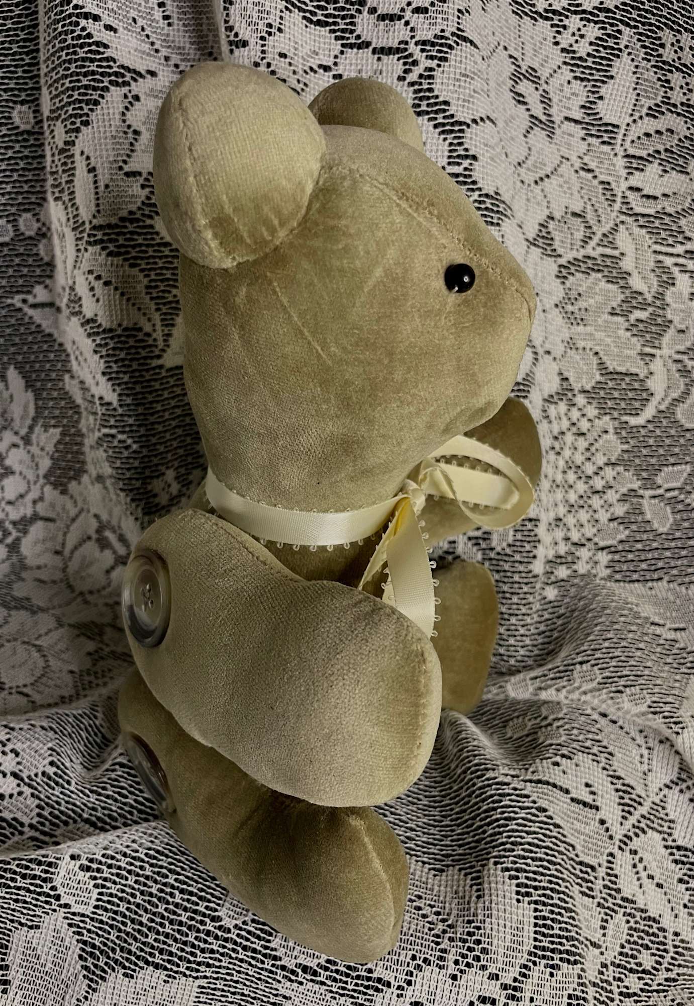 Medium, velveteen bear, button jointed limbs, sachet, rose, silver grey