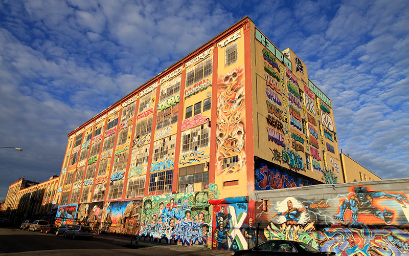 View of 5Pointz, by Ezmosis, CC BY-SA 3.0, via Wikimedia Commons